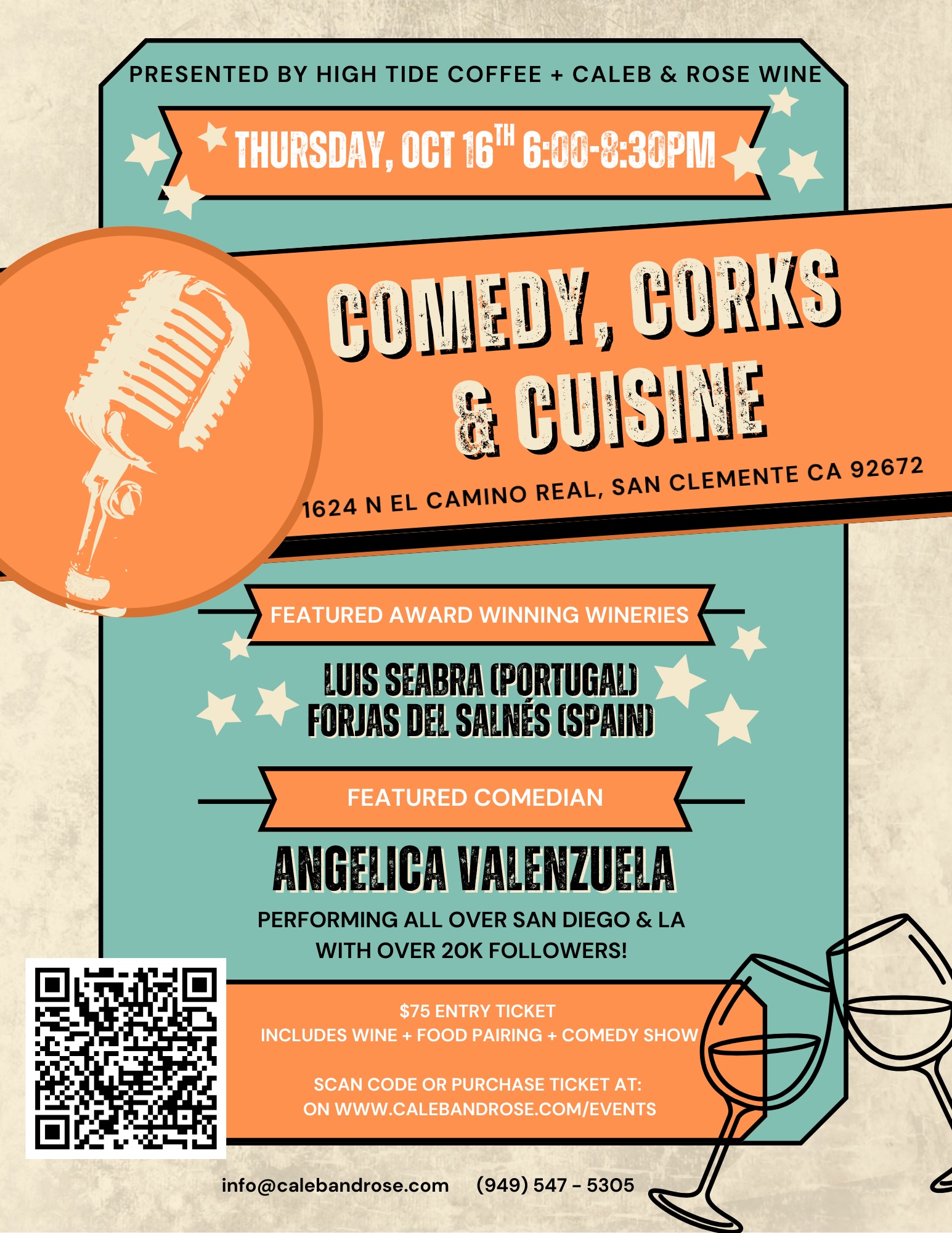 Join us for an unforgettable evening where world-class wines meet world-class laughs! This event features:
